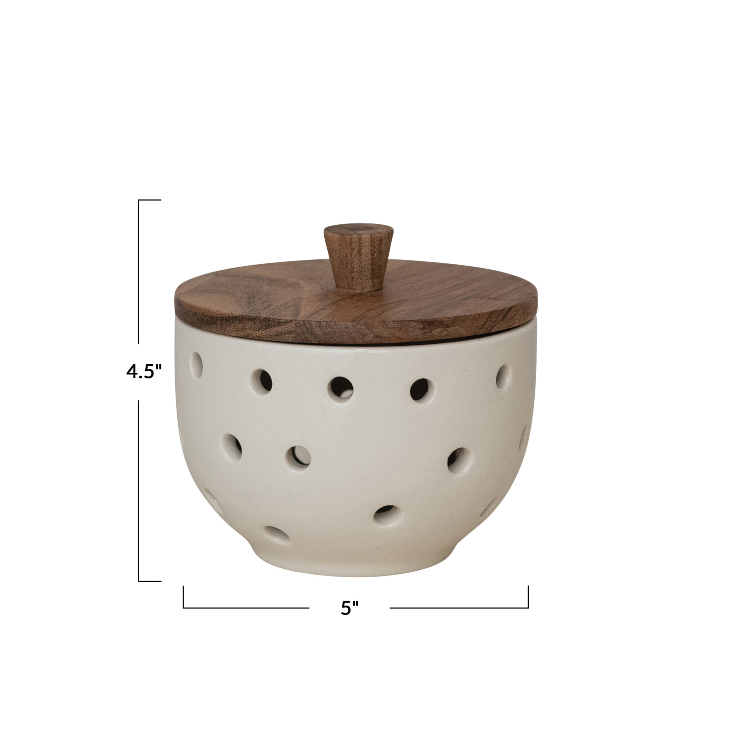Catalog Name: 5" Round x 4-1/2"H Stoneware Garlic/Onion Keeper w/ Mango Wood Lid, Cream Color & Natural