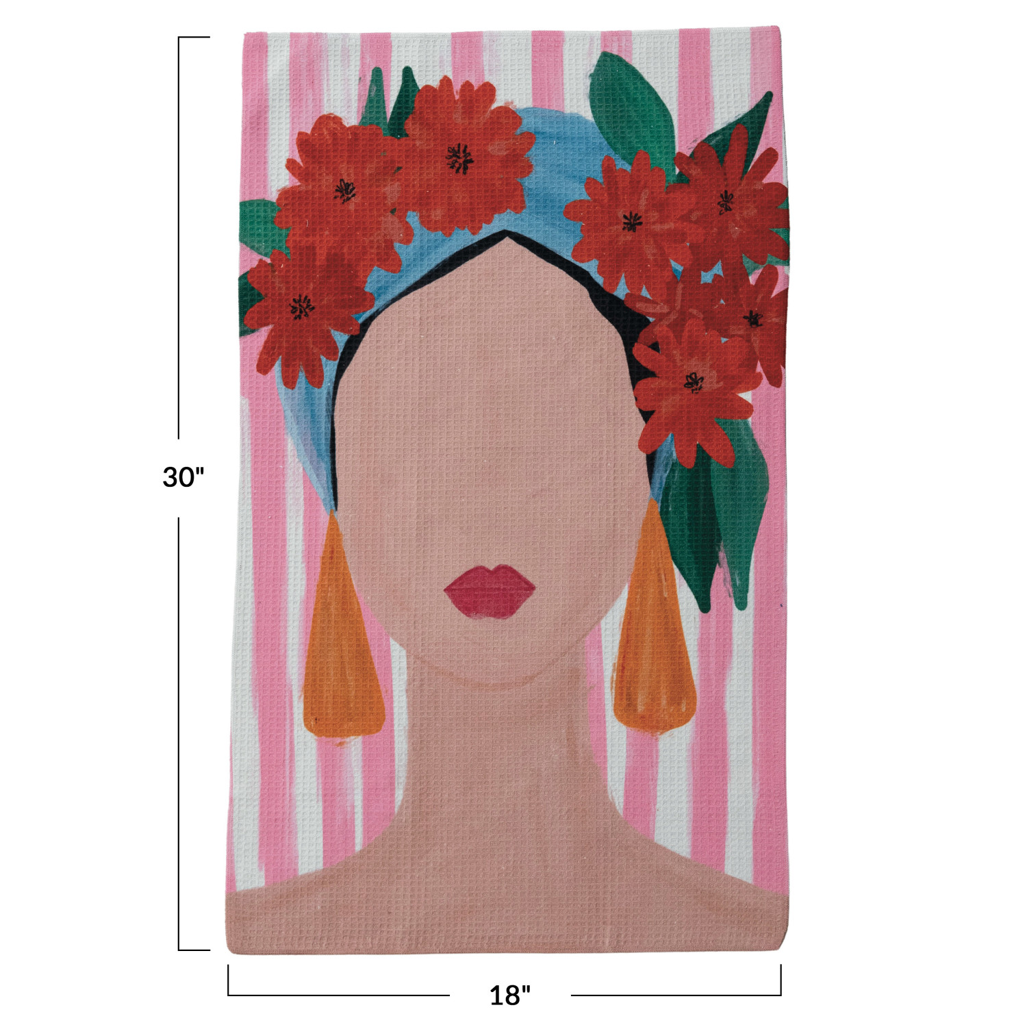 Catalog Name: 30"L x 18"W Printed Recycled Microfibre Tea Towel w/ Portrait of a Woman, Multi Color