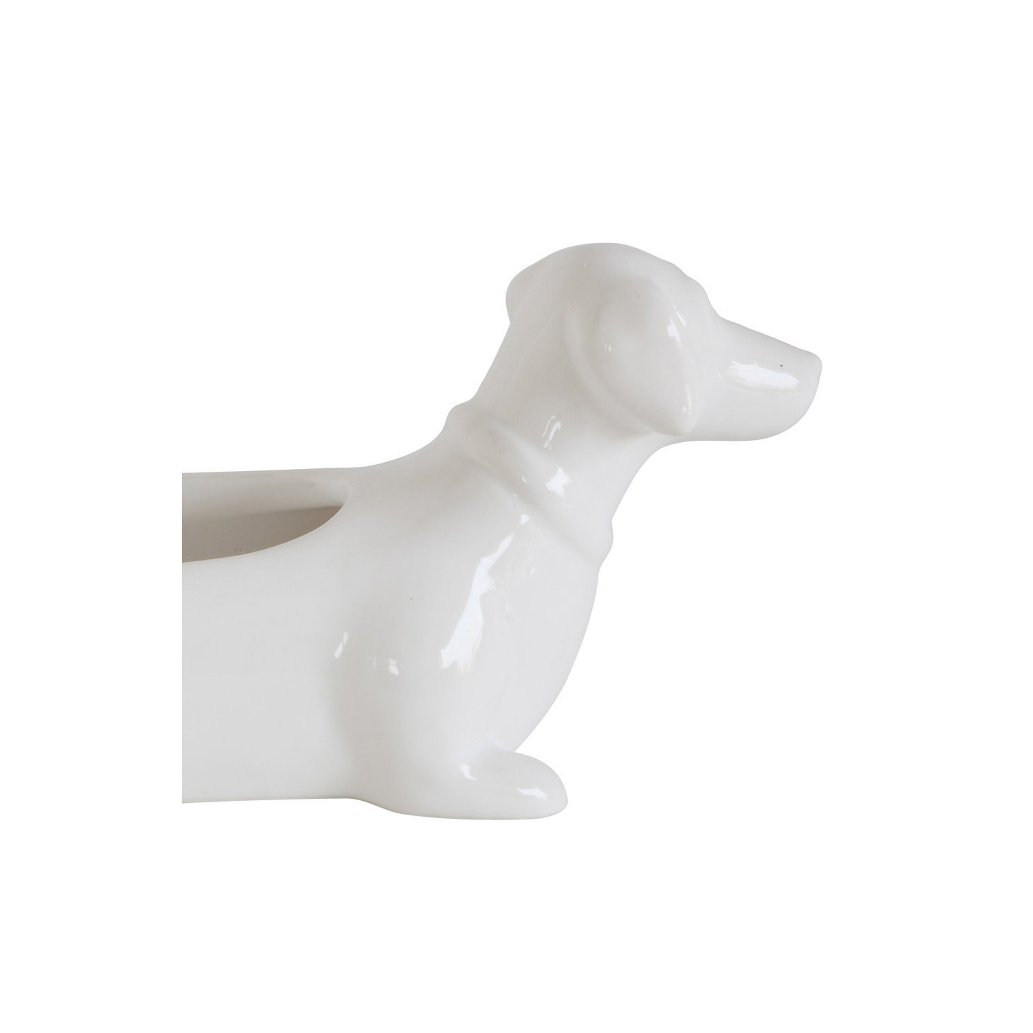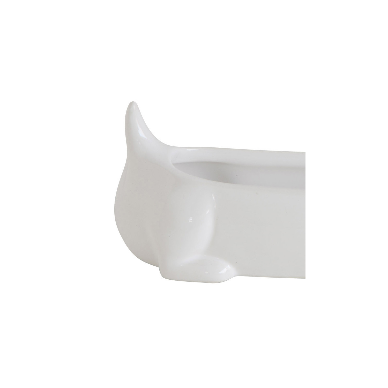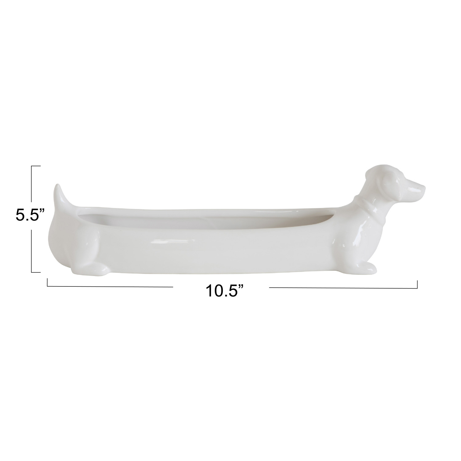 Catalog Name: 10-1/2"L x 3-1/4"W x 5-1/2"H Ceramic Dachshund Cracker Dish, White