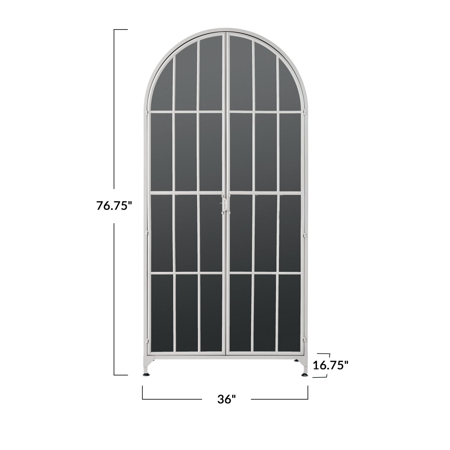 Catalog Name: 36"W x 16-3/4"D x 76-3/4"H Metal Arched Cabinet w/ 2 Glass Doors & 4 Shelves, Grey w/ Black Interior, Truck Ship