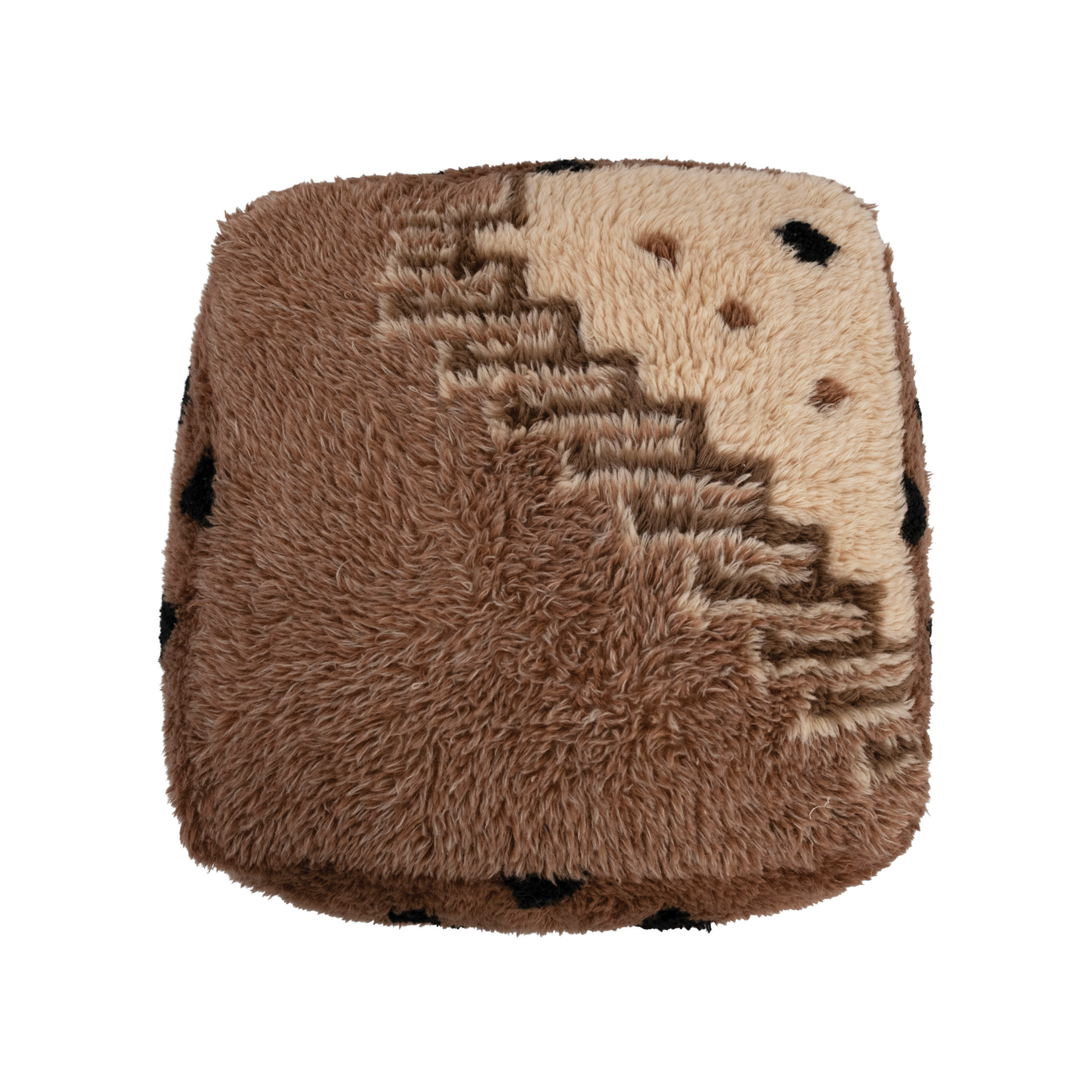 This statement-making pouf features luxurious new zealand wool in a bold, abstract design. Multicolor new zealand wool pouf with abstract design. Spot clean only. Upholstery is made from new zealand wood and cotton.