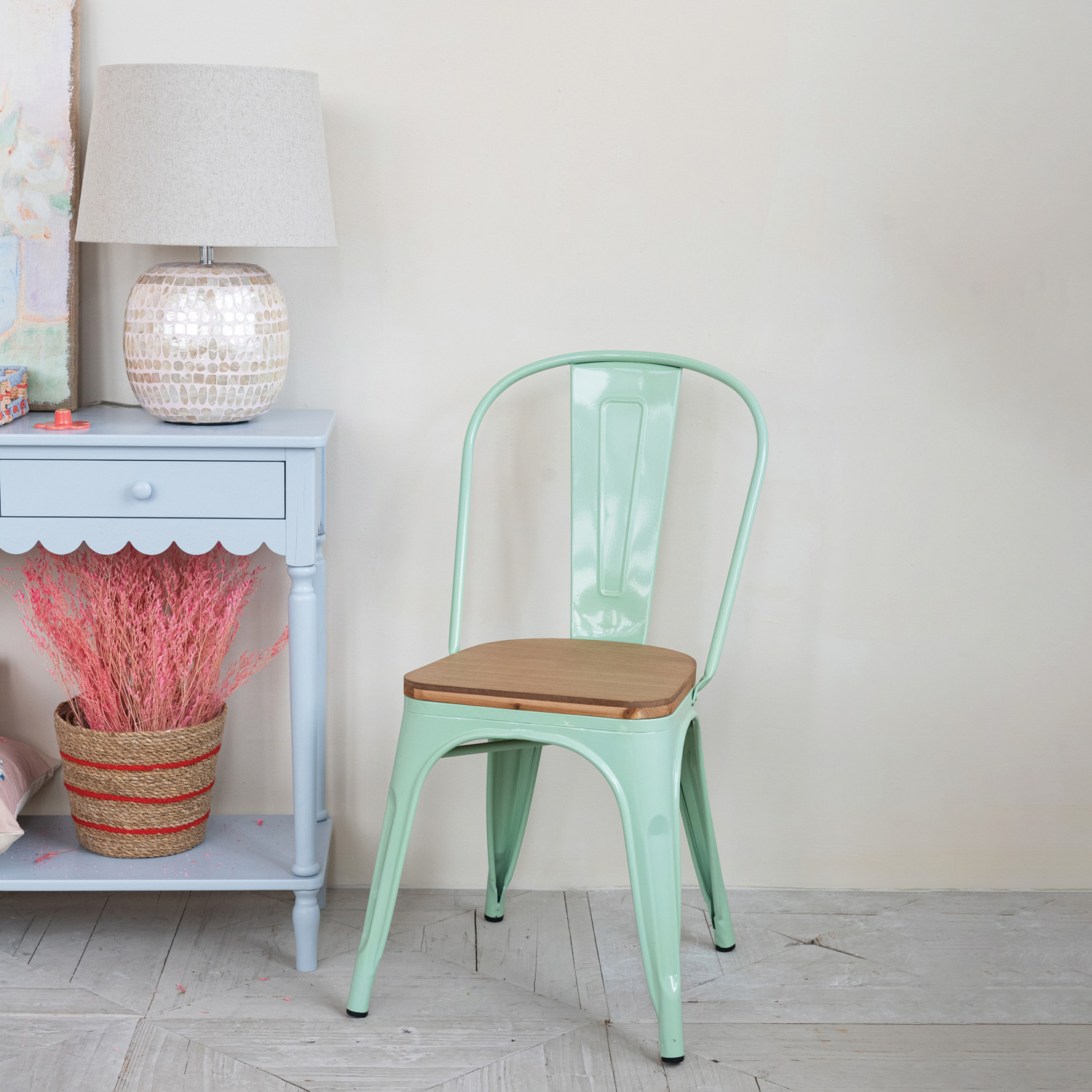 Metal & Wood Chair, Mint Color & Natural