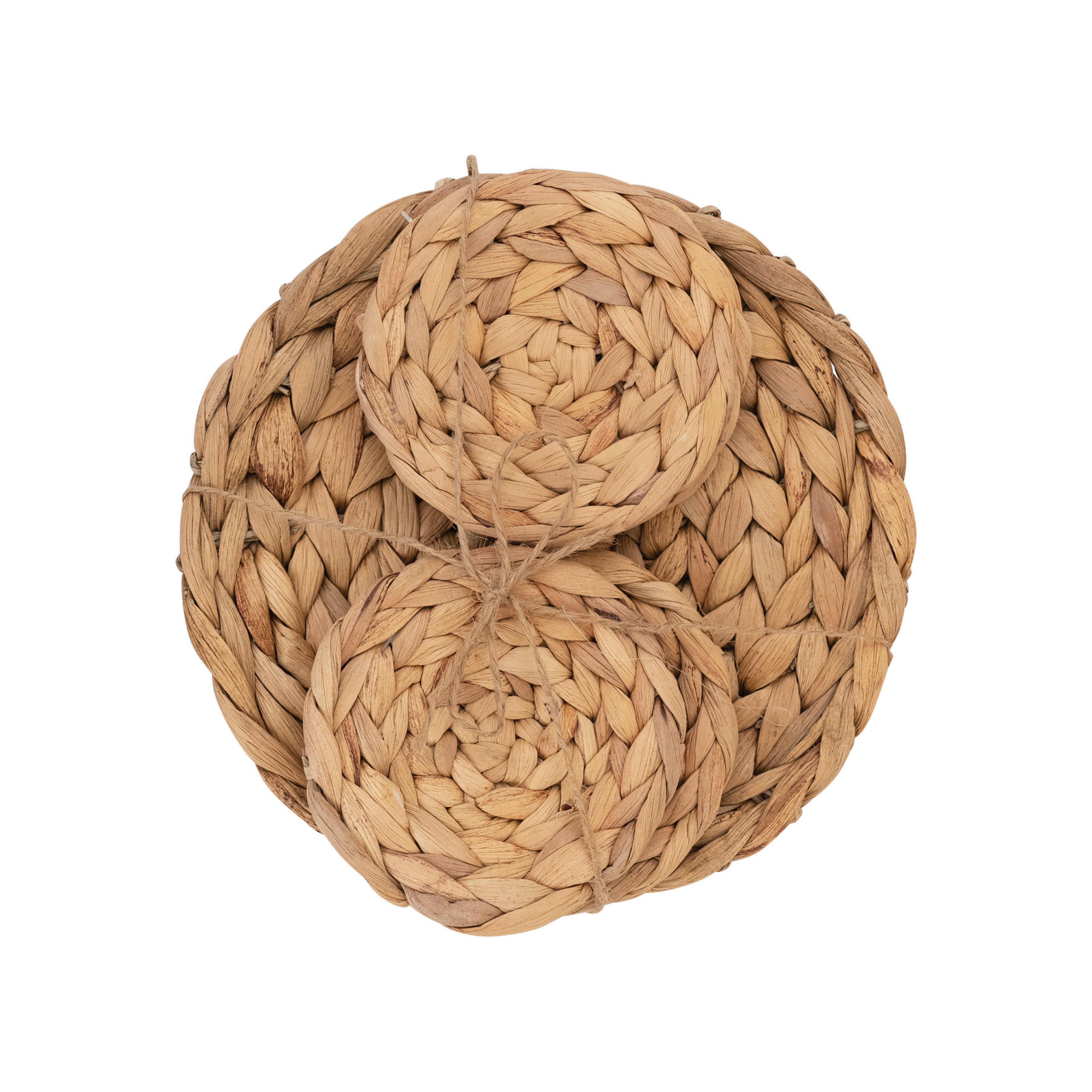 Catalog Name: 10" Round Hand-Woven Water Hyacinth Trivet & 4" Round Coasters, Natural, Set of 5