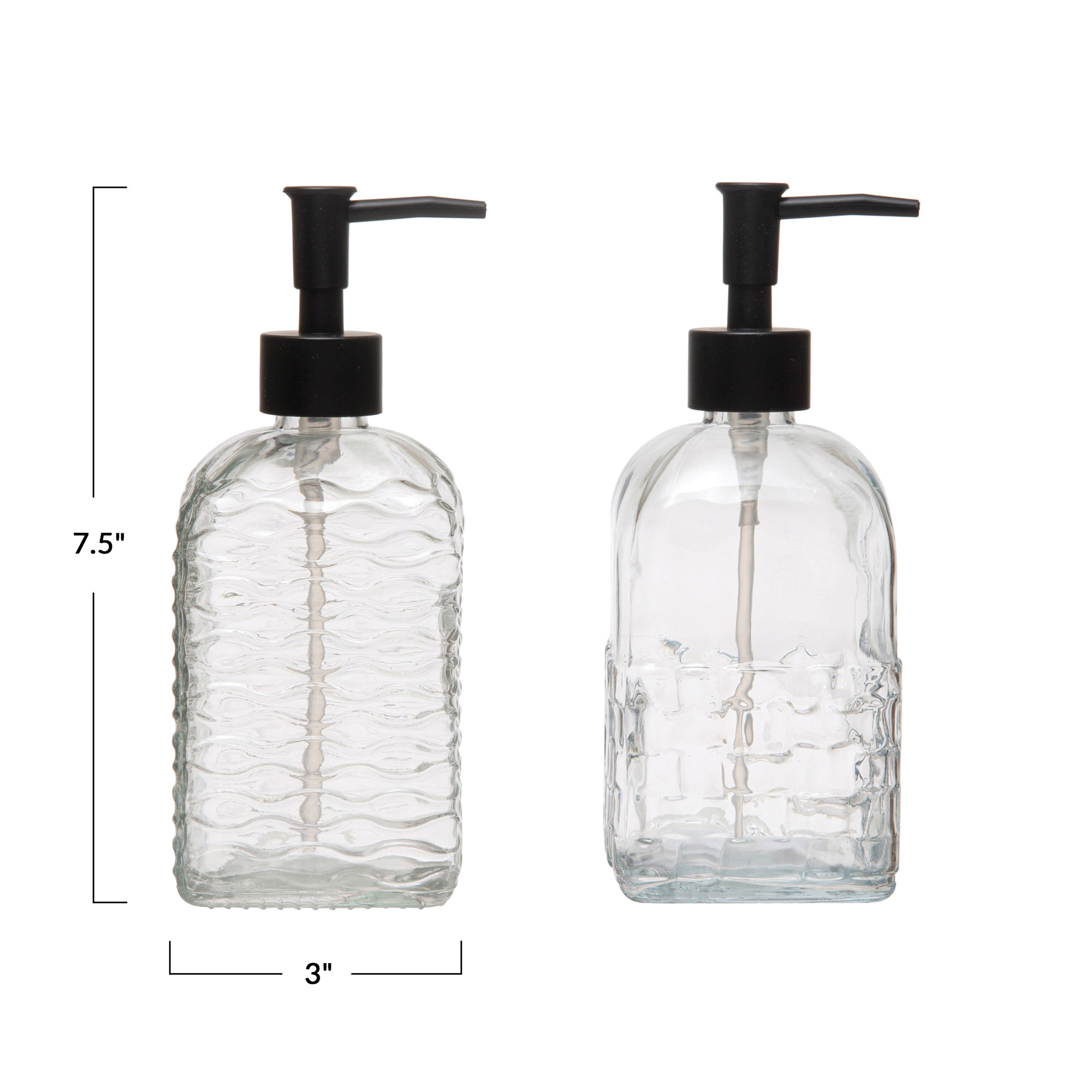 Embossed Glass Soap Dispenser with Pump, 2 Styles