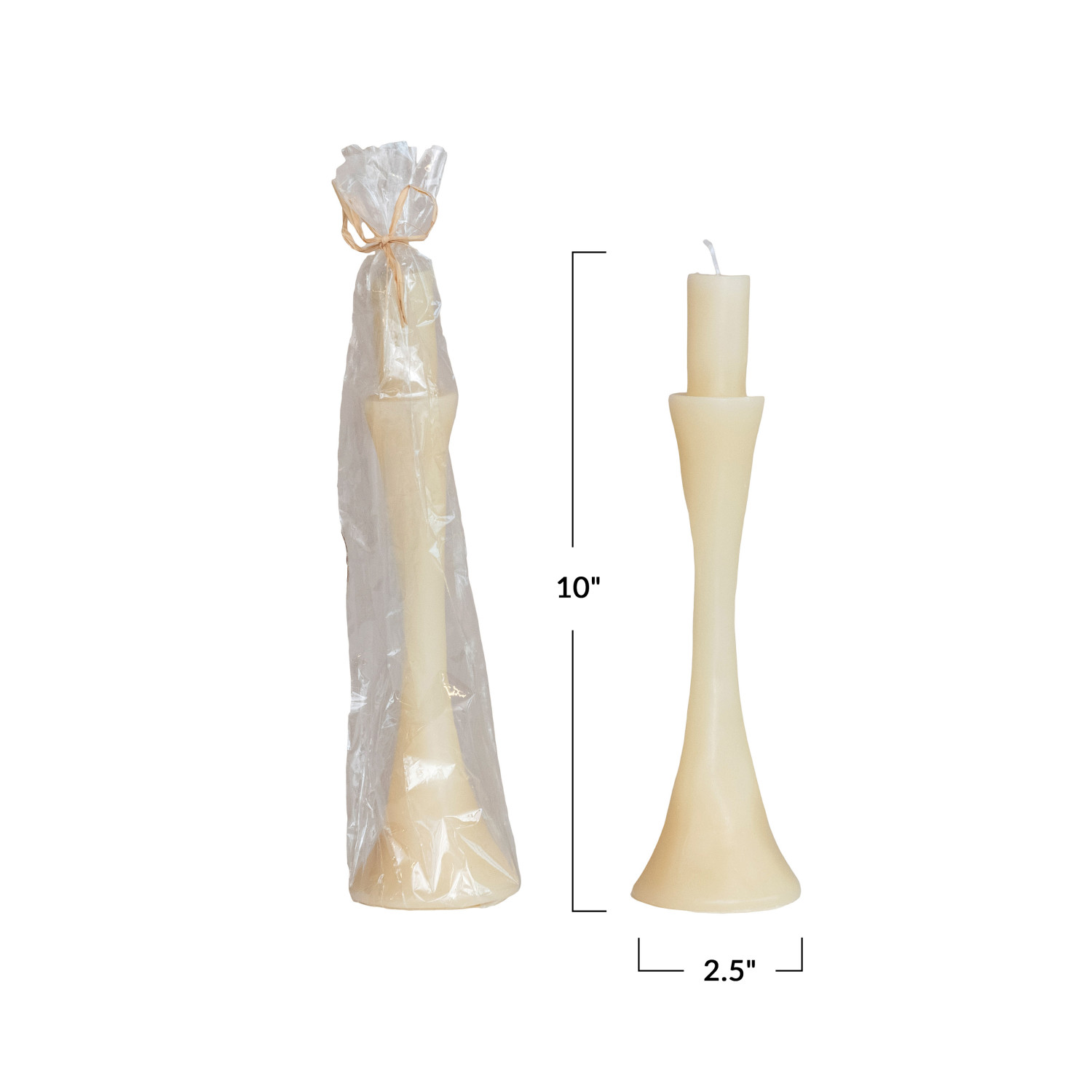 Catalog Name: 2-1/2" Round x 10"H Unscented Taper in Taper Holder Shaped Candle, Cream Color (Est. Burn Time 10 Hours)