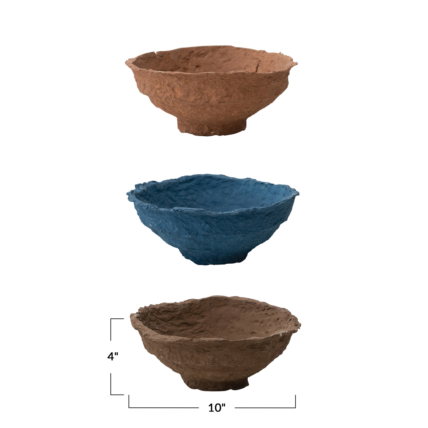 Catalog Name: 10" Round x 4"H Decorative Handmade Paper Mache Bowl, 3 Colors (Each One Will Vary)
