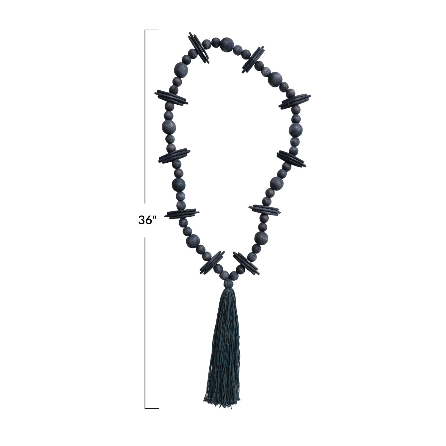 Catalog Name: 36"L Oak Wood Beads w/ Cotton Tassel, Black