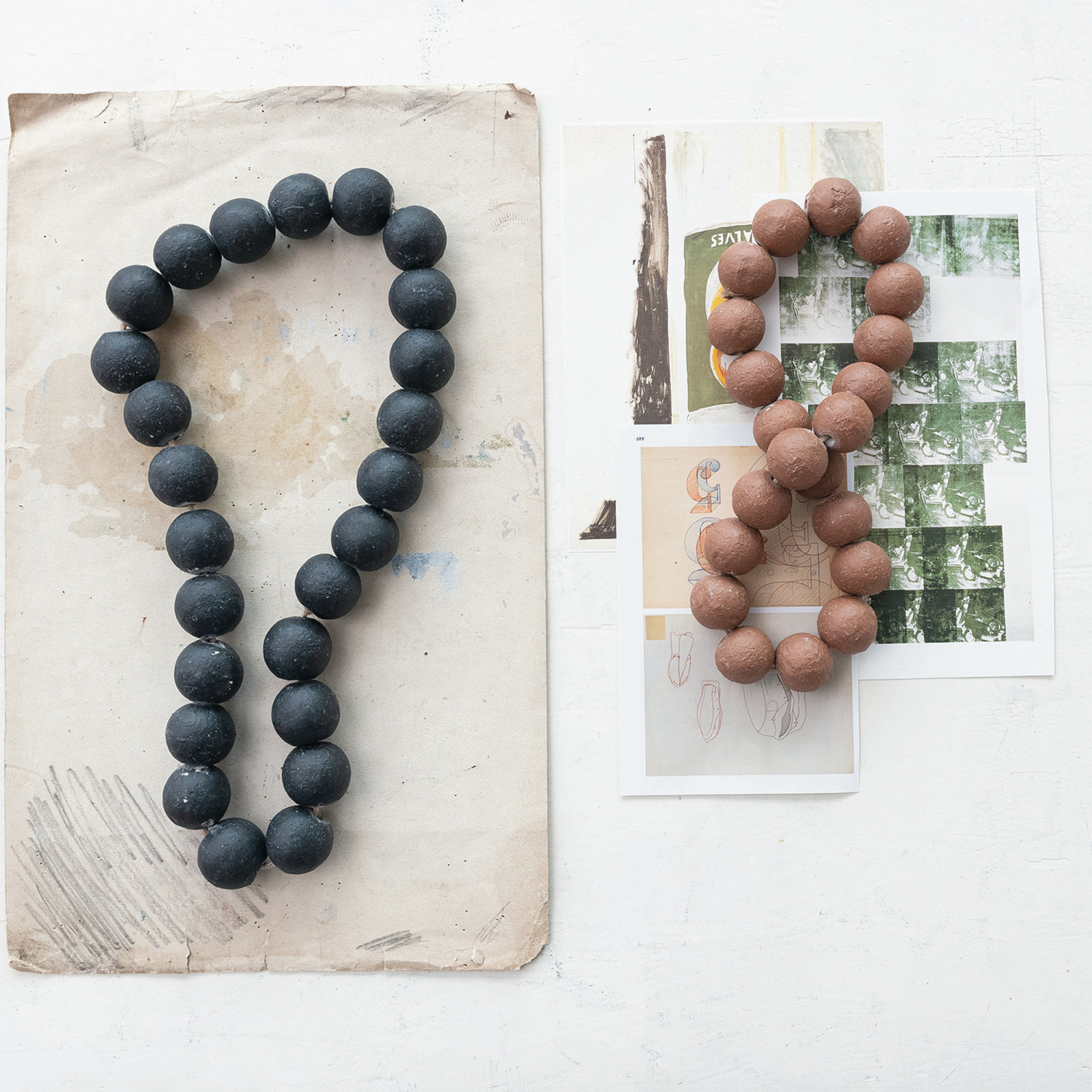 This Cement Bead Garland is a versatile accessory that captures the essence of handcrafted decor. The round beads are finished in a distressed brown, echoing the natural patina of time-worn materials. Each bead is strung together, creating a garland that measures 11.75 inches long and 2.25 inches wide. It's a piece that resonates with the rustic beauty of Boho, Lodge, or Country aesthetics, and its solid cement construction ensures it will remain a lasting part of every home's ambiance. Whether used as a standalone accent or as part of a larger display, this bead garland is a testament to understated elegance.