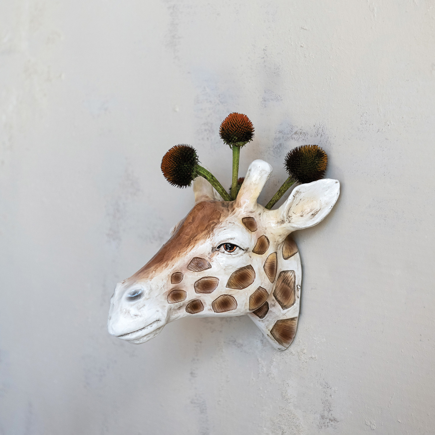 Resin Giraffe Head Wall Vase, Cream Color & Brown