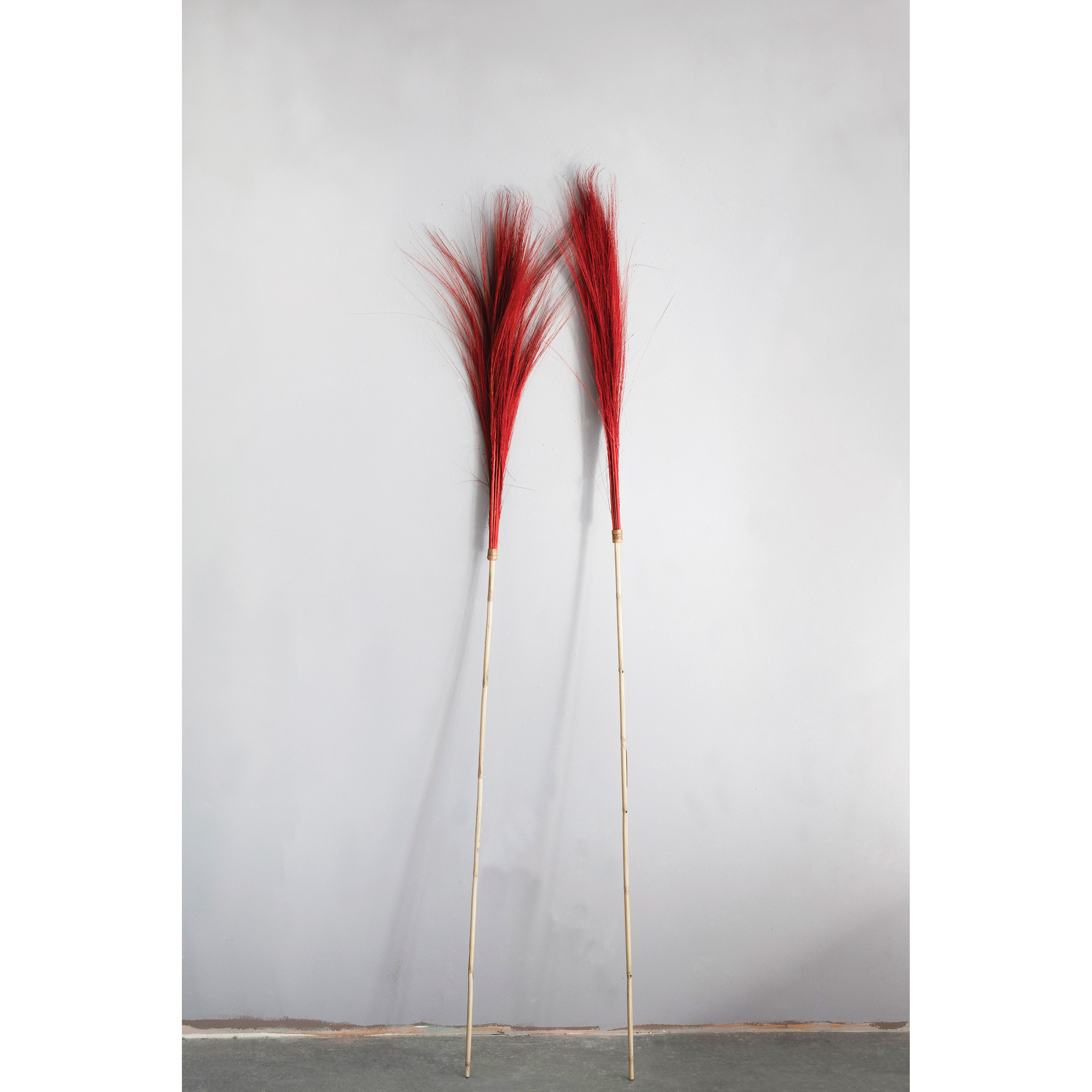 Catalog Name: Approximately 78"H Dried Natural Tiger Grass on Bamboo Pole, Red
