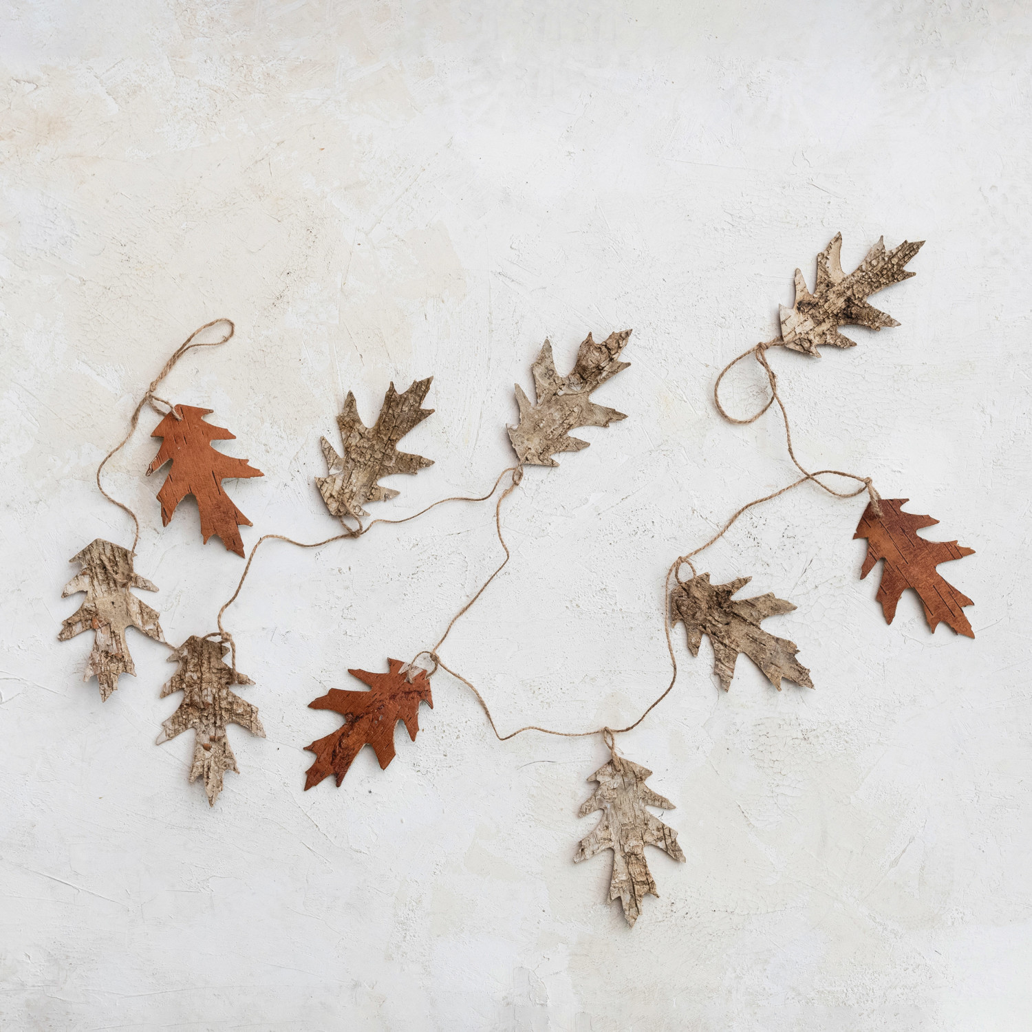 Birch Bark Oak Leaf Shaped Garland w/ Jute Cord, Natural
