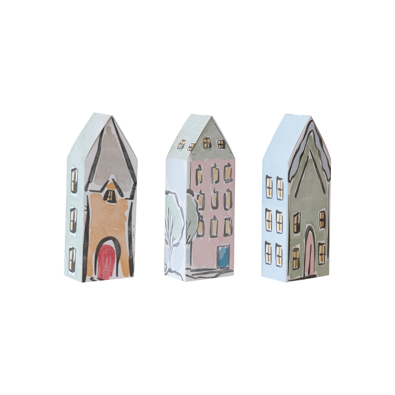 Printed Recycled Paper House Shaped Gift Boxes, Set of 3 ©