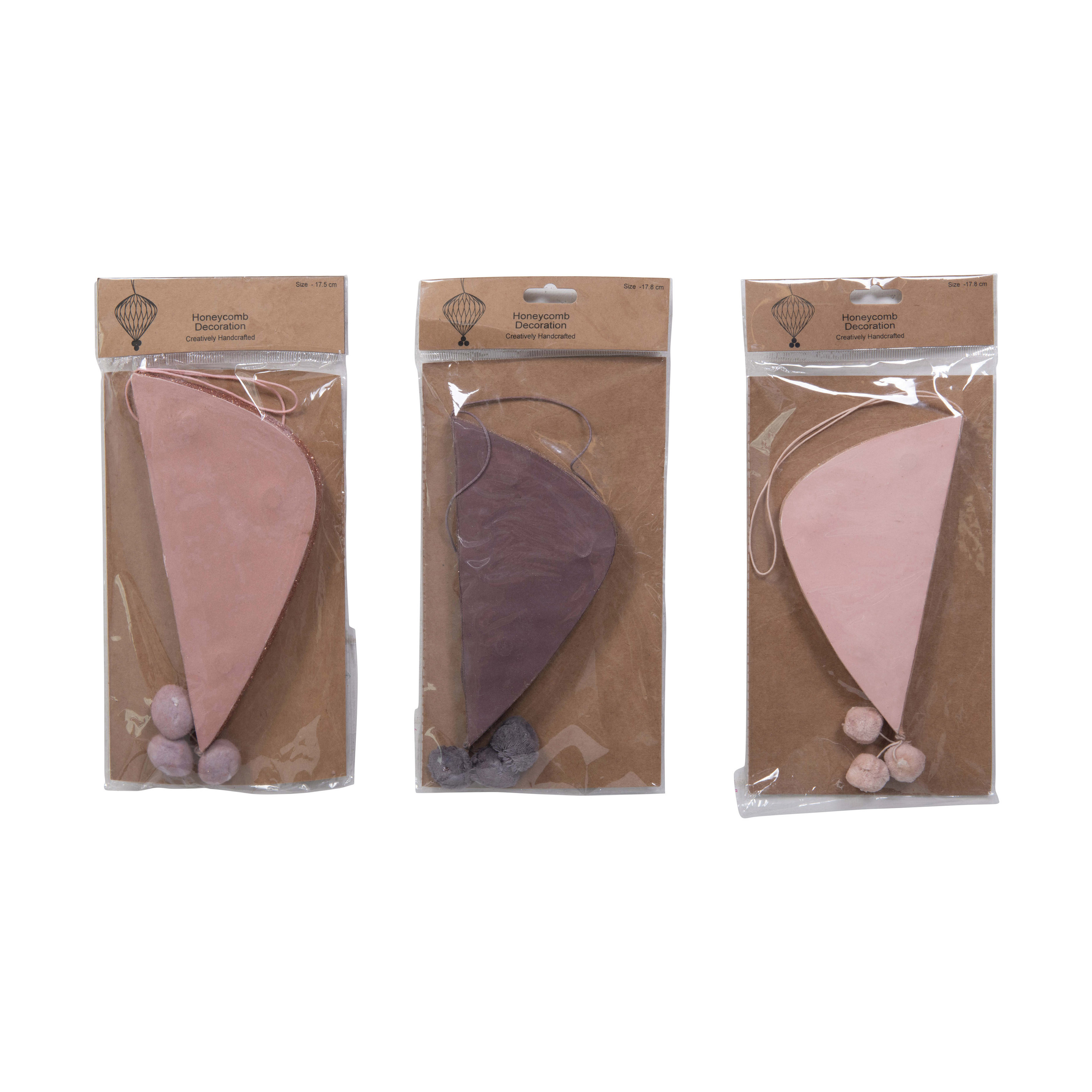 7"H Paper Honeycomb Ornament with Pom Poms, 3 Colors