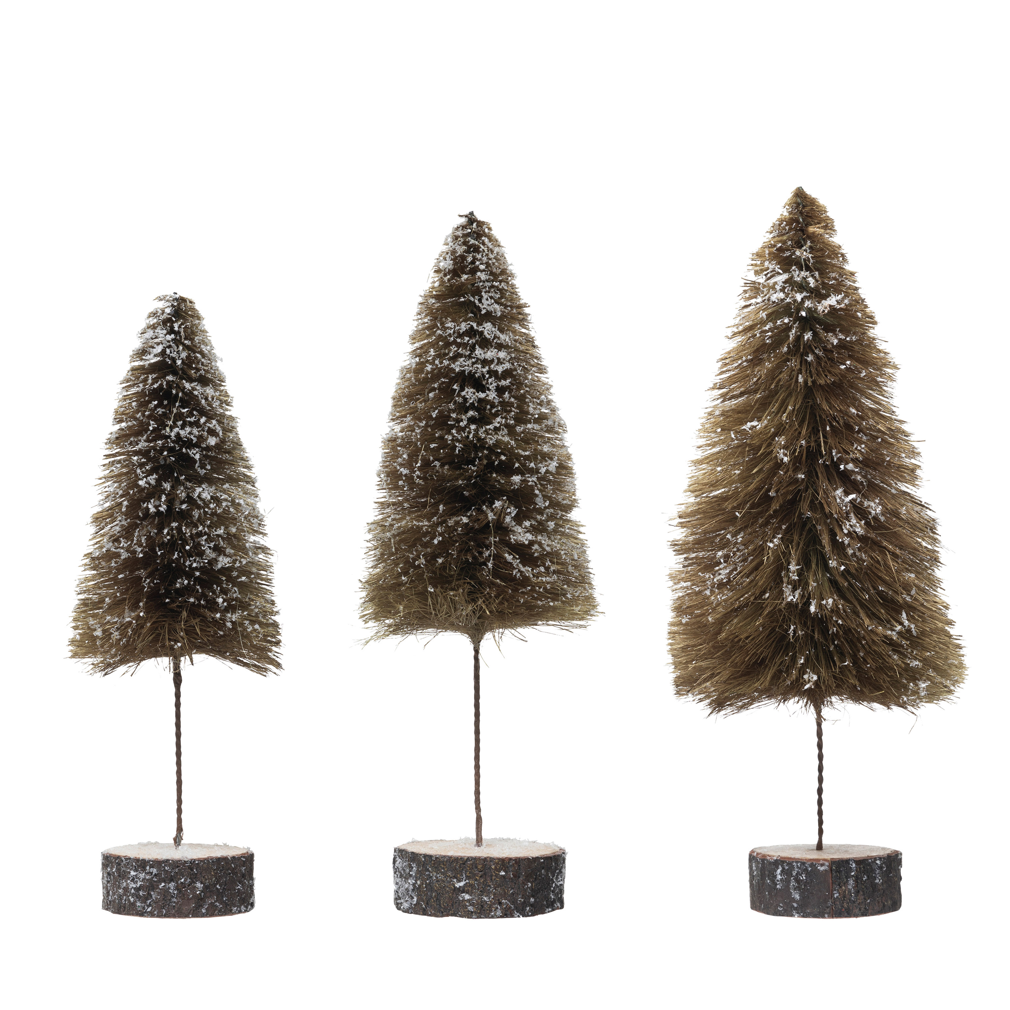 Sisal Bottle Brush Tree with Wood Slice Base, Snow Finish