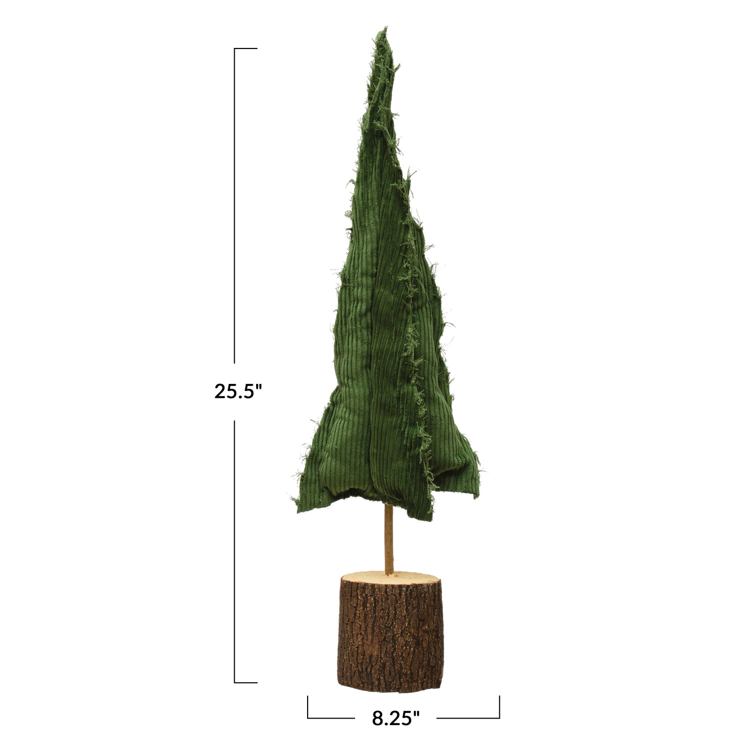 Catalog Name: 8-1/4" Round x 25-1/2"H Raw-Edged Corduroy Tree w/ Wood Slice Base, Green