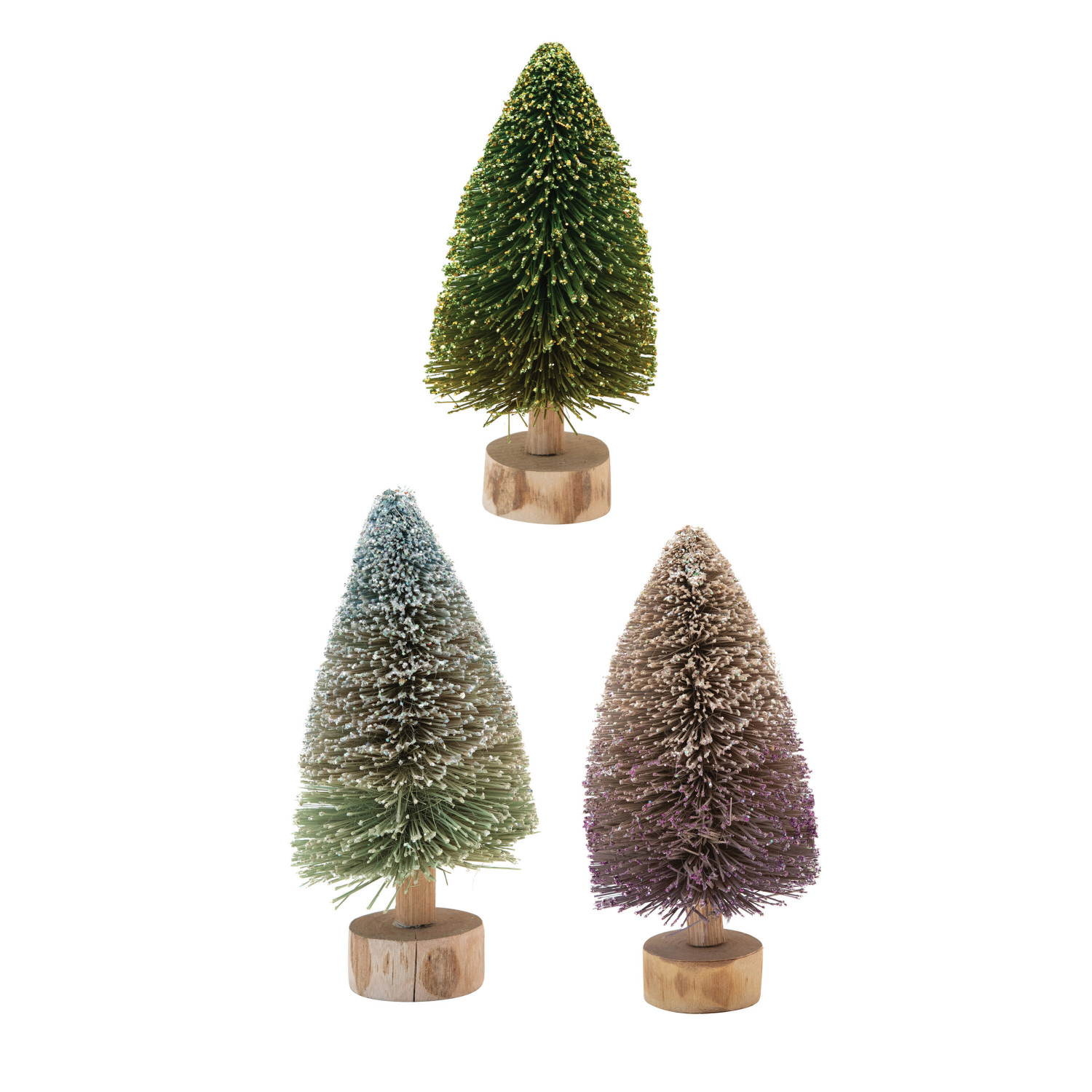 Catalog Name: 3" Round x 6-1/4"H Sisal Bottle Brush Tree w/ Wood Base, Ombre, 3 Colors