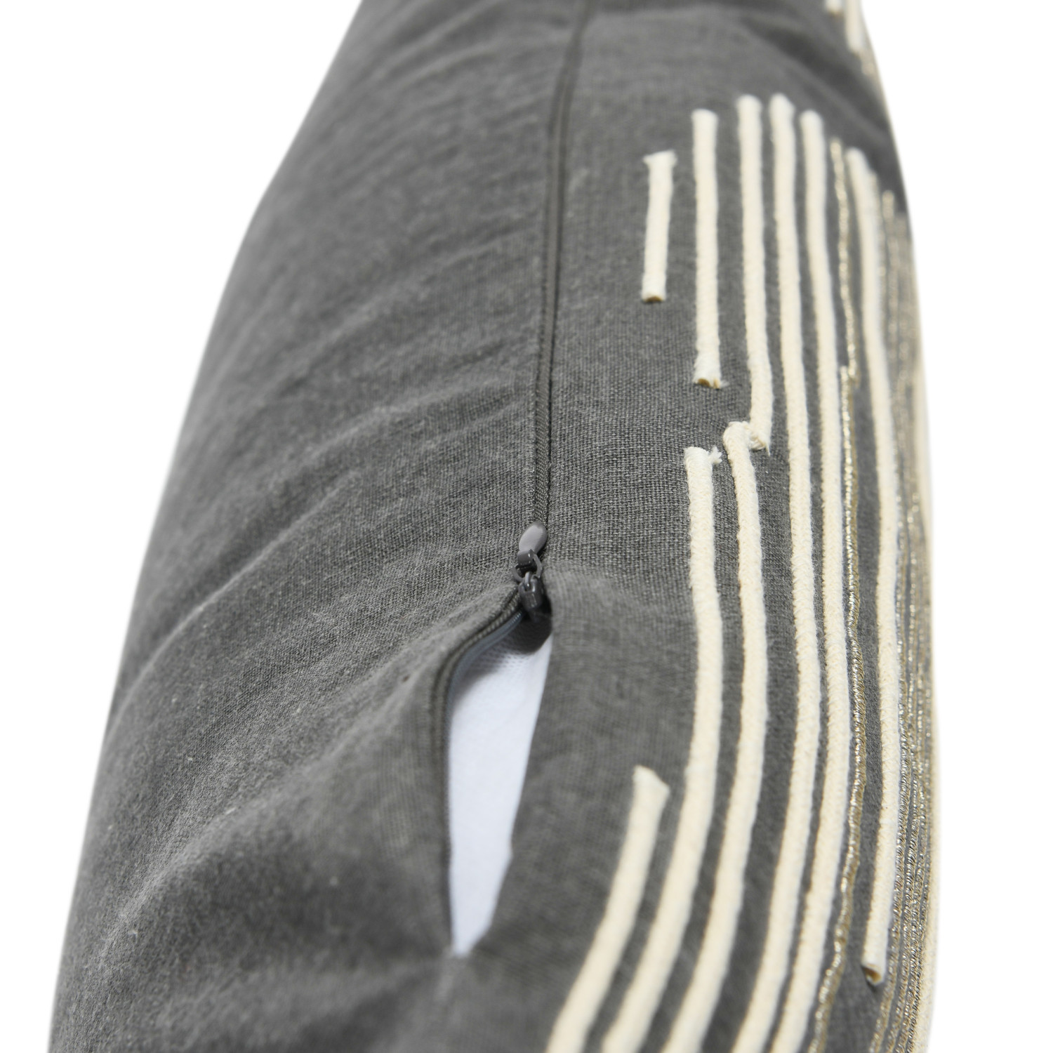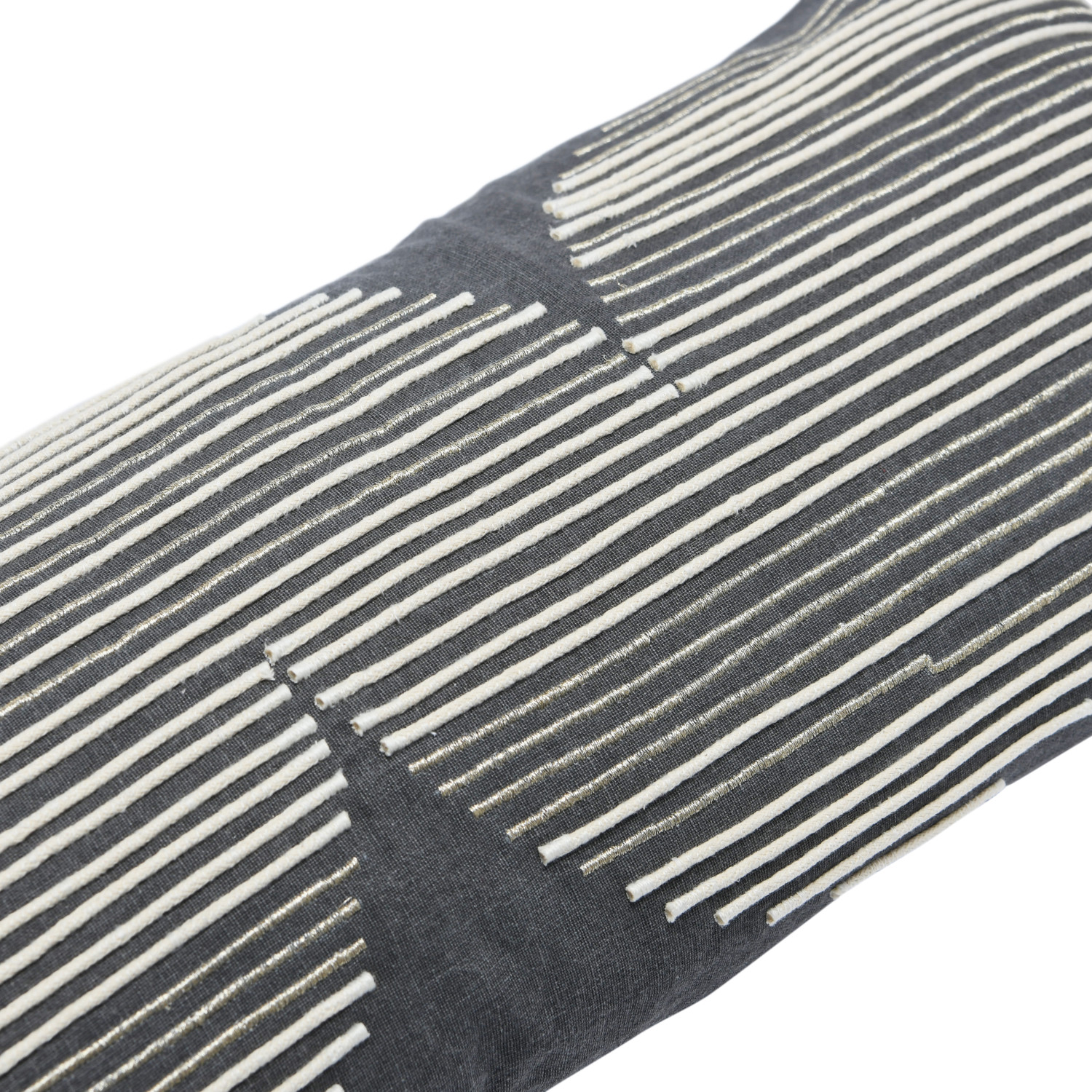 Catalog Name: 24"L x 10"H Cotton Lumbar Pillow w/ Gold Metallic Thread Embroidery & Rope Applique, Grey